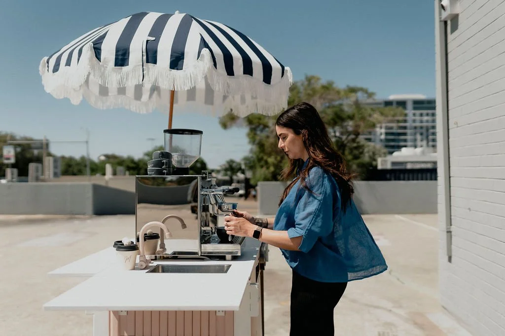 We’ve poured coffees in hotel ballrooms, branded pop-ups, corporate foyers, rooftop bars, weddings, and open-air festivals. And we’ve done it for names you’ll know — Qantas, Vogue, Camilla, SIR, and the major WA universities, premium car brands and global retailers. We’ve worked inside The Ritz, Optus Stadium, the QT Hotel, Perth Convention Centre, Regal Theatre, and most of the big Westfield precincts. We’ve moved through them all quietly, safely, professionally — like we’ve done this a hundred times. Because we have.